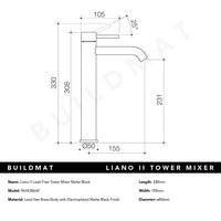 Caroma Liano II Tower Basin Mixer Lead Free Matte Black