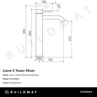 Caroma Liano II Tower Basin Mixer Lead Free Brushed Brass