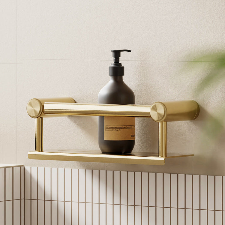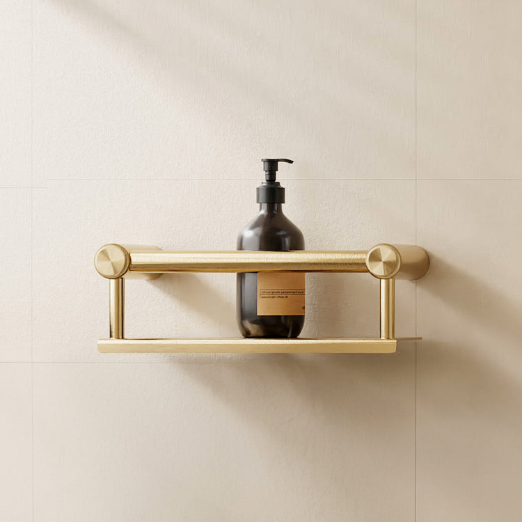 Nero Mecca Care 25mm Grab Rail with Shelf 450mm Brushed Gold