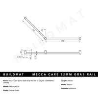 Nero Mecca Care 32mm DDA Grab Rail Set 45 Degree 750x900mm Chrome