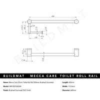 Nero Mecca Care 25mm Toilet Roll Rail 450mm Brushed Gunmetal