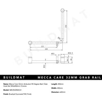 Nero Mecca Care 32mm Ambulant 90 Degree Bent Tube Grab Rail 450x450mm Chrome