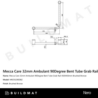 Nero Mecca Care 32mm Ambulant 90Degree Bent Tube Grab Rail 450X450mm Brushed Bronze