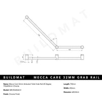 Nero Mecca Care 32mm Ambulant Toilet Grab Rail 45 Degree 750x450mm Chrome