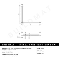 Nero Mecca Care 32mm Ambulant Toilet Grab Rail 90 Degree 450x450mm Brushed Gunmetal