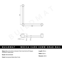 Nero Mecca Care 32mm Ambulant Toilet Grab Rail 90 Degree 450x450mm Matte Black