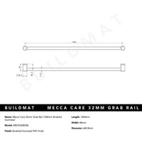 Nero Mecca Care 32mm Grab Rail 1200mm Brushed Gunmetal