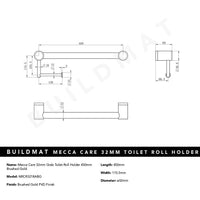 Nero Mecca Care 32mm Grab Rail Toilet Roll Holder 450mm Brushed Gold