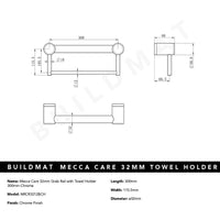 Nero Mecca Care 32mm Grab Rail with Towel Holder 300mm Chrome