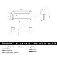 Nero Mecca Care 32mm Grab Rail with Towel Holder 300mm Matte Black