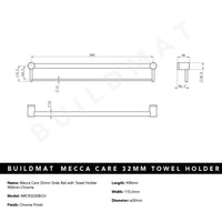 Nero Mecca Care 32mm Grab Rail with Towel Holder 900mm Chrome