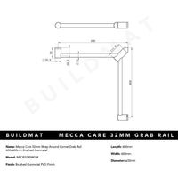 Nero Mecca Care 32mm Wrap Around Corner Grab Rail 600x600mm Brushed Gunmetal