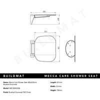 Nero Mecca Care Shower Seat 400x330mm Brushed Gunmetal