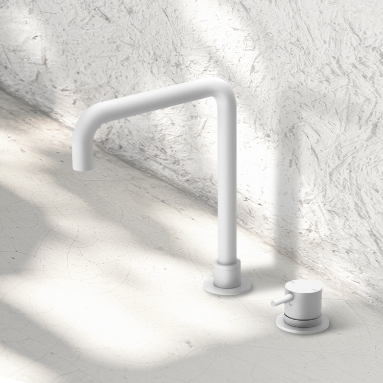 Nero Mecca Hob Basin Mixer Square Swivel Spout Matte White