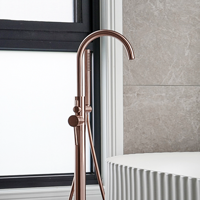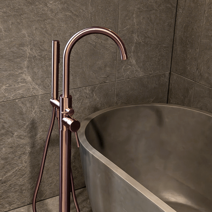 Nero Mecca Round Freestanding Mixer With Hand Shower Brushed Bronze