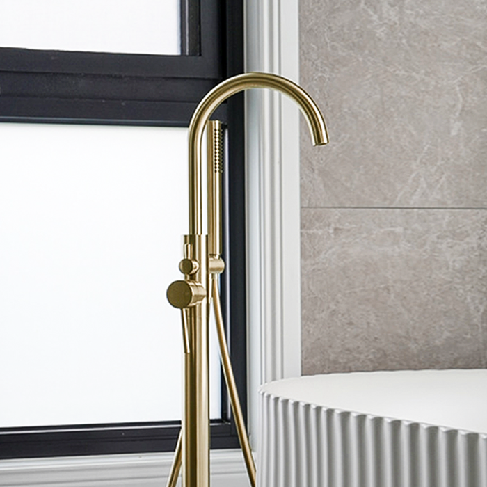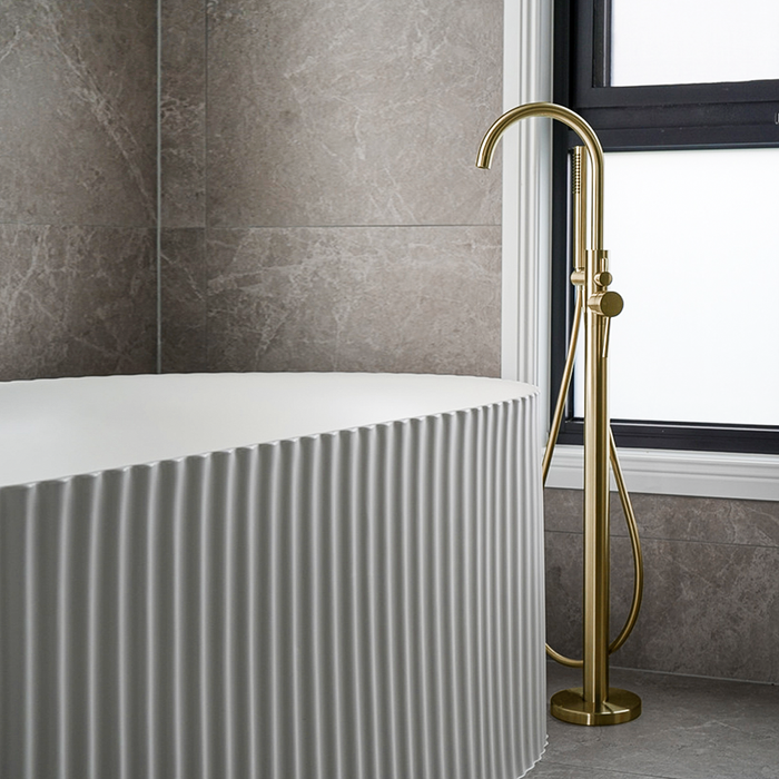 Product Type: Free Standing Bath FillersProduct SKU: NR210903aBGColour: Brushed GoldMaterial: BrassWELS Rating: 9L/Min, 3 StarWELS Registration No: S17463 Features Solid brass construction for longevity Swivel spout Easy install conceal connecting... Read more