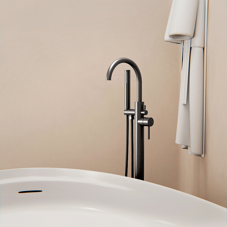 Nero Mecca Round Freestanding Mixer with Hand Shower Brushed Gunmetal