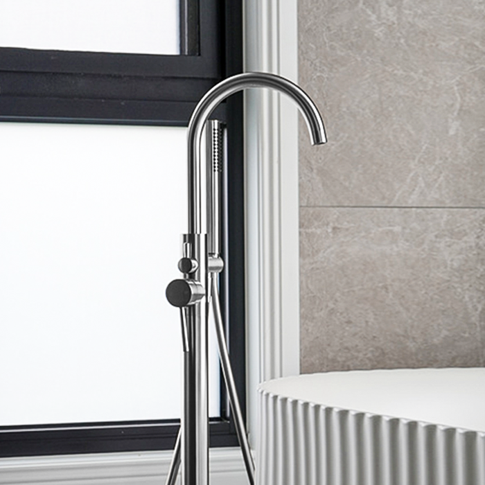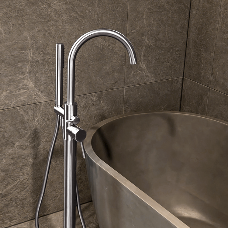 Nero Mecca Round Freestanding Mixer With Hand Shower Chrome