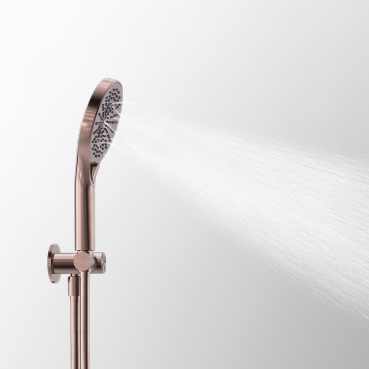 Product Type: Rail ShowerProduct SKU: NR221905dBZColour: Brushed BronzeMaterial: BrassWELS Rating: 9L/Min, 3StarWELS Registration No: S15220 Features High Quality solid metal rail 3 function handset Exposure round rail with built-in water delivery... Read more