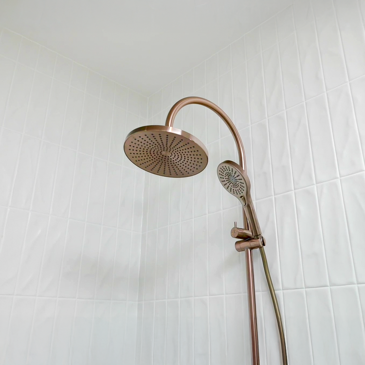 Product TypeTwin Showers ColourBrushed Bronze MaterialBrass WELS RatingOverhead Shower 9L/Min, 3 Star, Hand Shower 9L/Min, 3 Star WELS Registration NoS17337 Read more