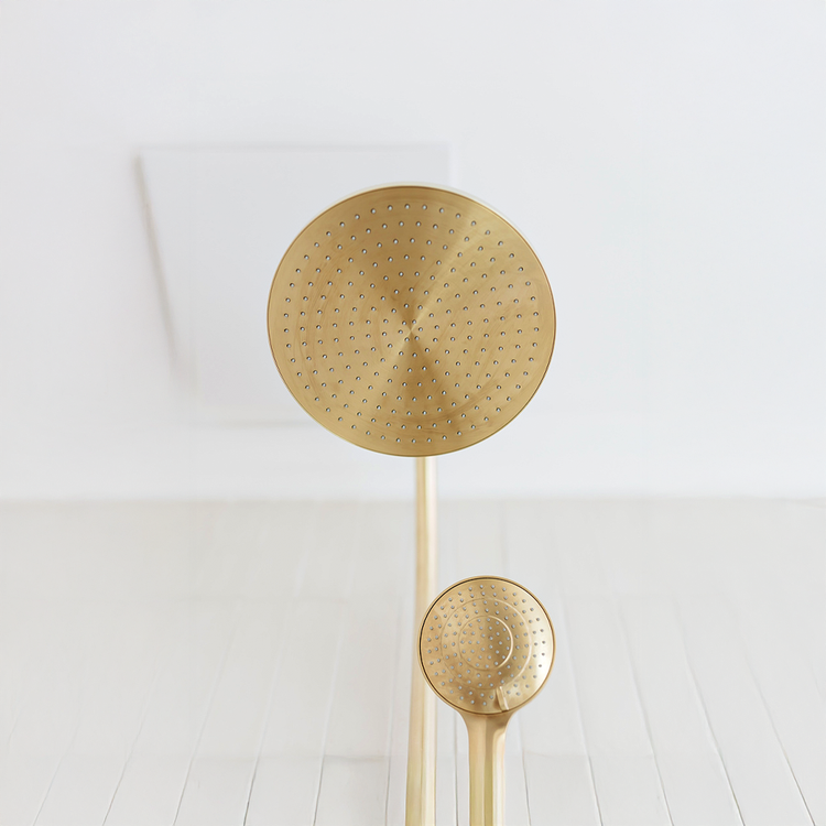 Product Type: Twin ShowersProduct SKU: NR221905bBGColour: Brushed GoldMaterial: BrassWELS Rating: Overhead Shower 9L/Min, 3 Star, Hand Shower 9L/Min, 3 StarWELS Registration No: S17346 Features 3 Function Handshower and 230mm Exposure dome... Read more