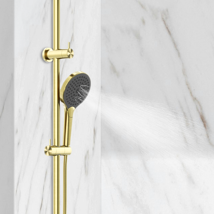 Product TypeTwin Showers ColourBrushed Gold MaterialBrass WELS RatingOverhead Shower 9L/Min, 3 Star, Hand Shower 9L/Min, 3 Star WELS Registration NoS17339 Read more