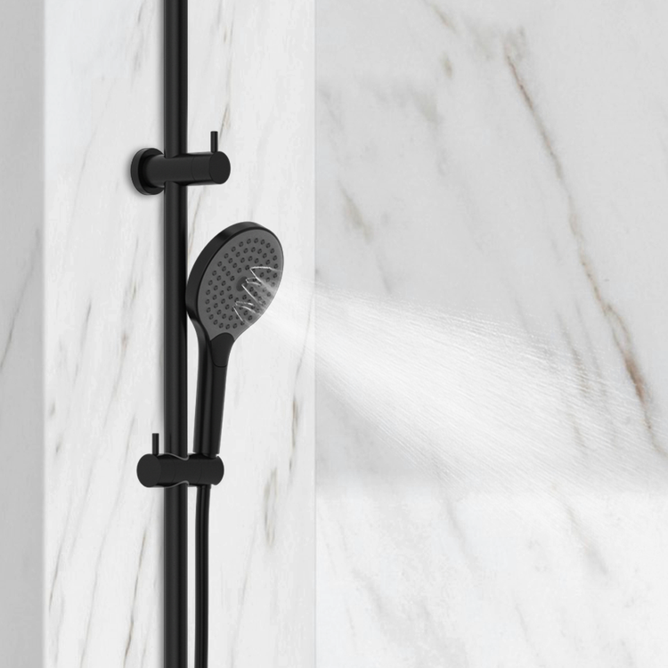 Product TypeTwin Showers ColourMatte Black MaterialBrass WELS RatingOverhead Shower 9L/Min, 3 Star, Hand Shower 9L/Min, 3 Star WELS Registration NoS17339 Read more