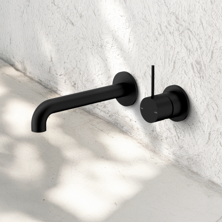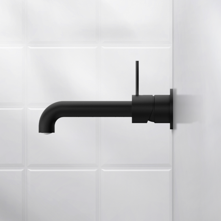 Nero Mecca Wall Basin/Bath Mixer Separate Back Plate Handle Up 160mm Matte Black