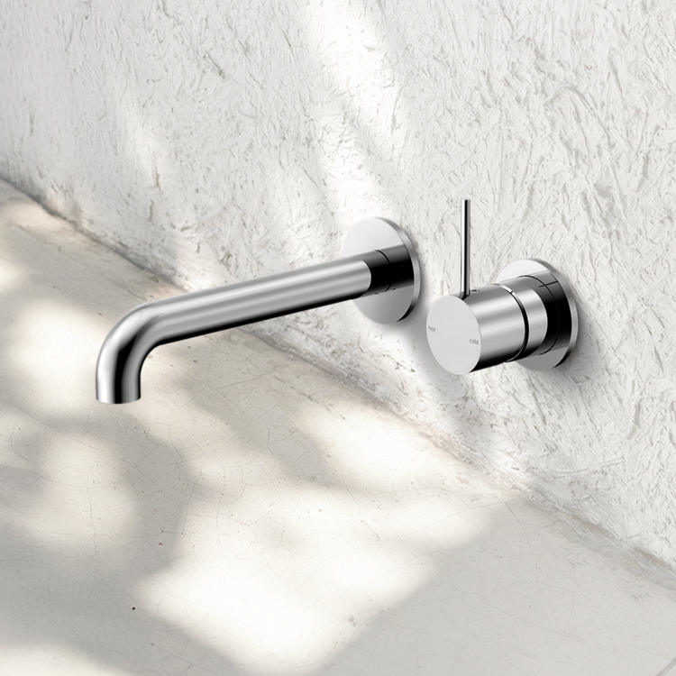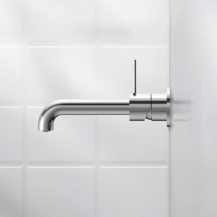 Nero Mecca Wall Basin/Bath Mixer Separate Back Plate Handle Up 185mm Chrome