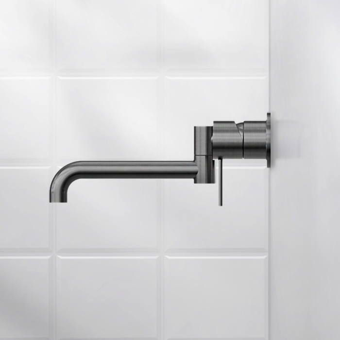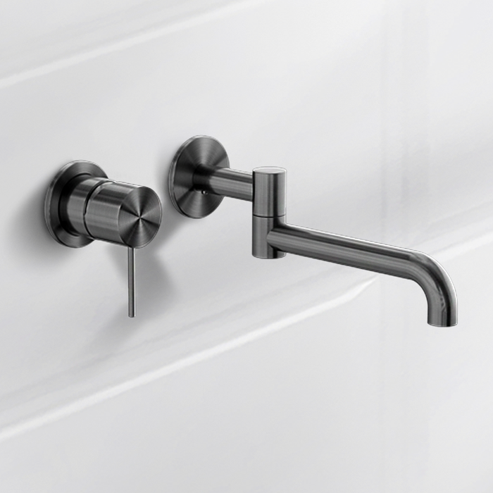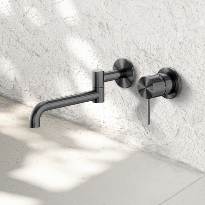 Nero Mecca Wall Basin/Bath Mixer Swivel Spout 225mm Brushed Gunmetal