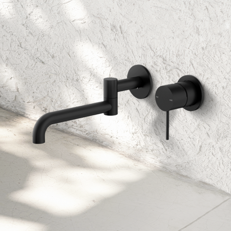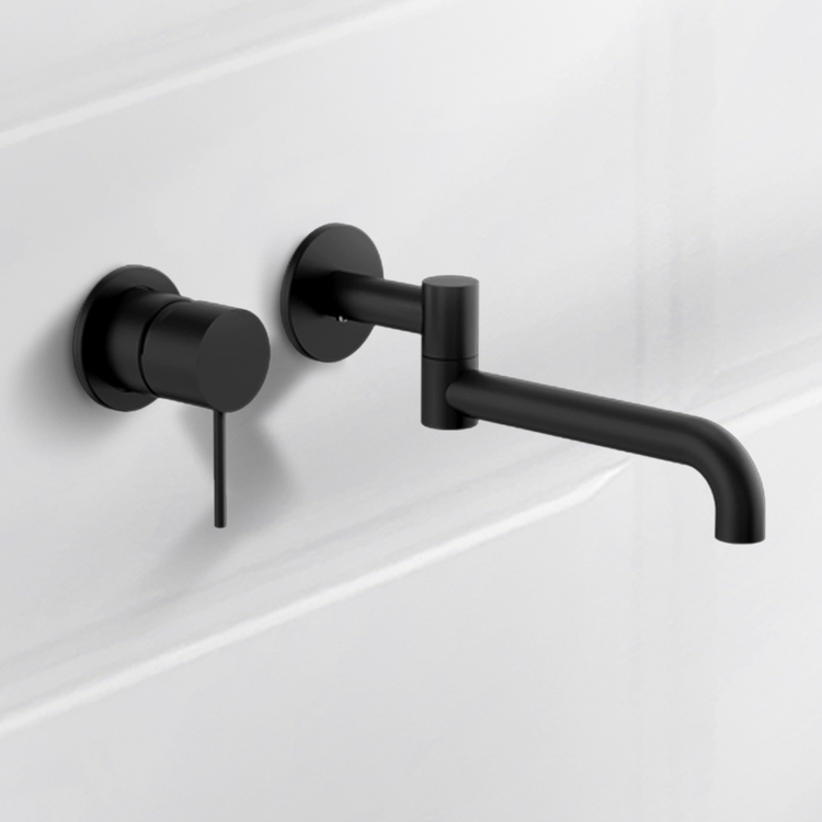 Nero Mecca Wall Basin/Bath Mixer Swivel Spout 225mm Matte Black