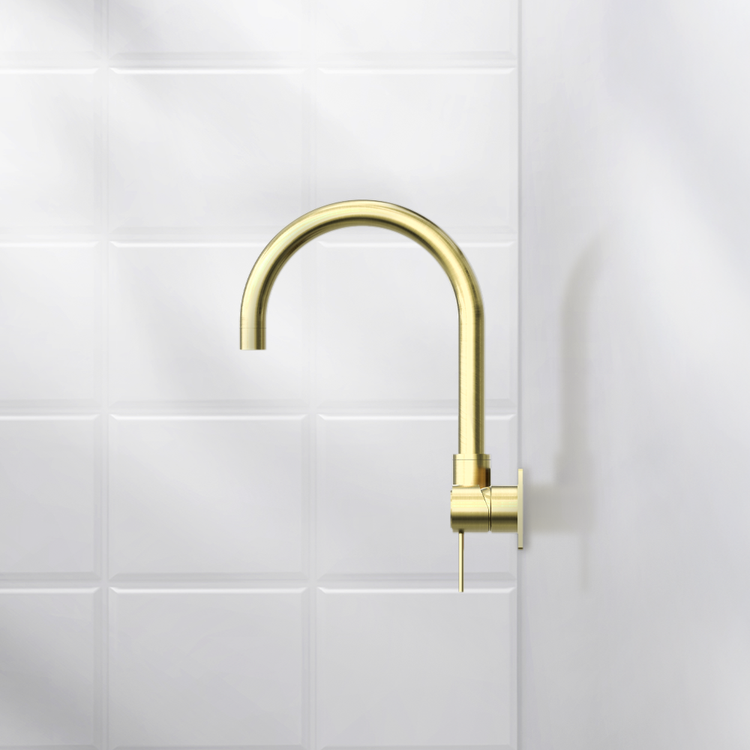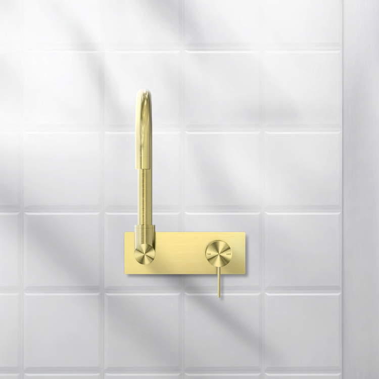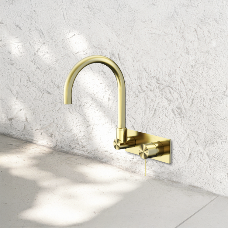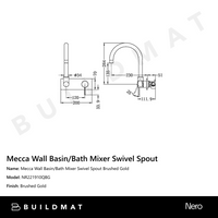 Nero Mecca Wall Basin/Bath Mixer Swivel Spout Brushed Gold