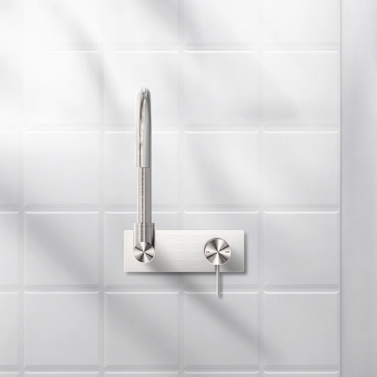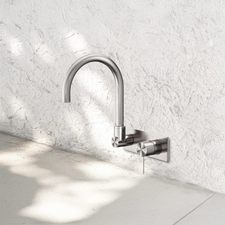 Nero Mecca Wall Basin/Bath Mixer Swivel Spout Brushed Nickel