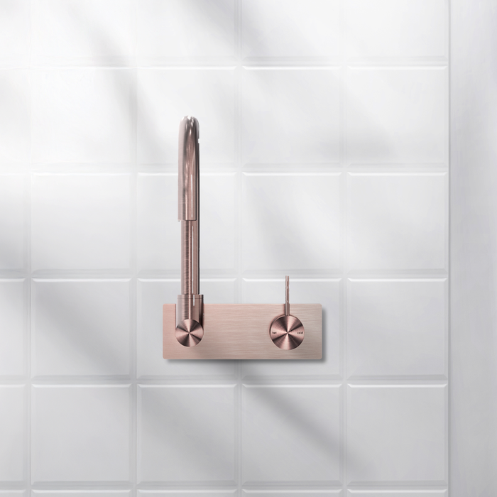 Nero Mecca Wall Basin/Bath Mixer Swivel Spout Handle Up Brushed Bronze