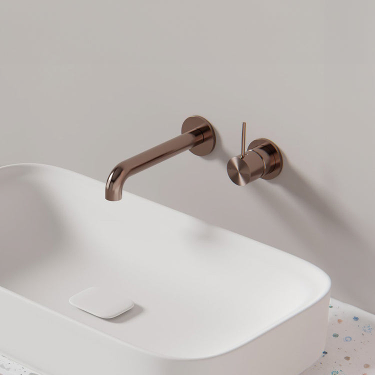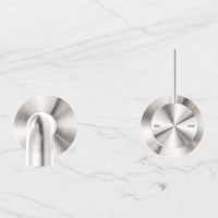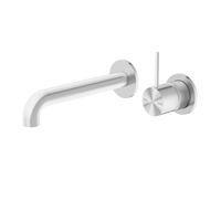 Nero Mecca Wall Basin Mixer Separate Back Plate Handle Up 185mm Spout Brushed Nickel