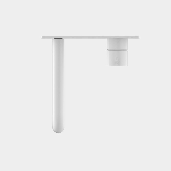 Nero Mecca Wall Basin Mixer Handle Up 185mm Spout Matte White
