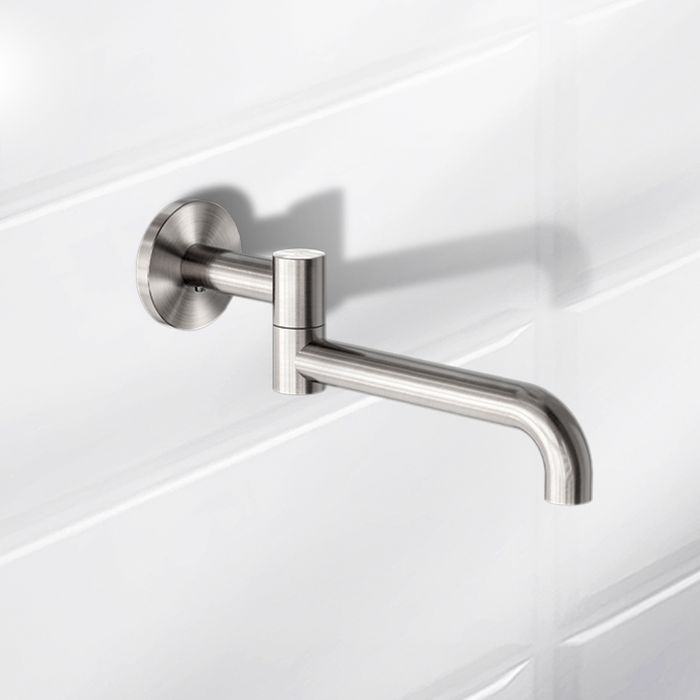 Nero Mecca Wall Mounted Swivel Basin/Bath Spout Only 225mm Brushed Nickel