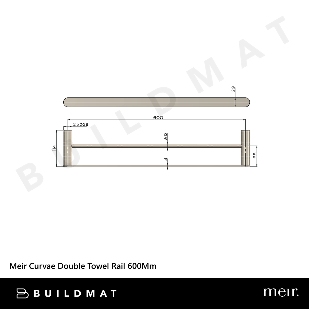 Meir Curvae Double Towel Rail 600mm Shadow Gunmetal