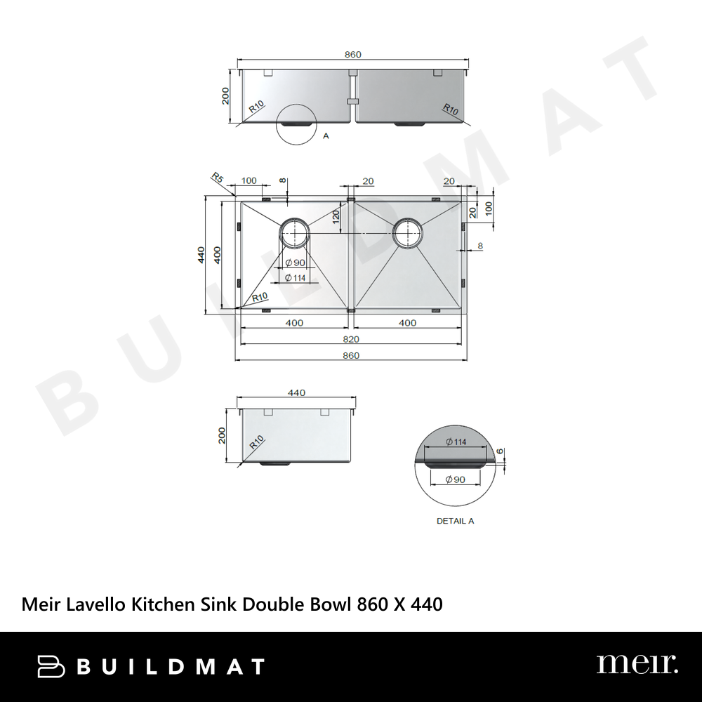 Meir Kitchen Sink Double Bowl 860 X 440 Shadow Gunmetal