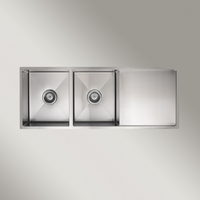 Meir Kitchen Sink Double Bowl And Drainboard 1160 X 440 Brushed Nickel