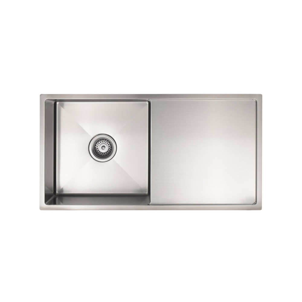 Preorder Mid to Late July New to our range, this Stainless Steel Single Bowl Kitchen Sink with Drainboard in Brushed Nickel combines cutting-edge nanotechnology and an environmentally friendly Brushed PVD... Read more