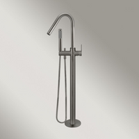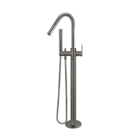 Meir Round Paddle Freestanding Bath Spout And Hand Shower Shadow Gunmetal