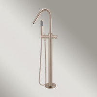 Meir Round Pinless Freestanding Bath Spout And Hand Shower Champagne