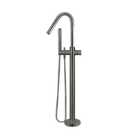 Meir Round Pinless Freestanding Bath Spout And Hand Shower Shadow Gunmetal