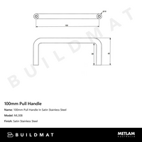 Metlam 100mm Pull Handle In Satin Stainless Steel