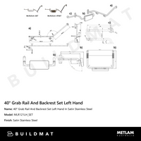 Metlam 40 Degree Grab Rail And Backrest Set Left Hand In Satin Stainless Steel