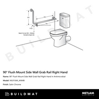 Metlam 90 Degree Flush Mount Side Wall Grab Rail Right Hand In Antimicrobial