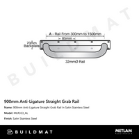 Metlam 900mm Anti-Ligature Straight Grab Rail In Satin Stainless Steel