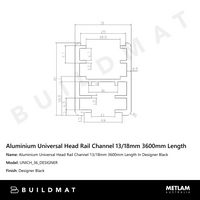 Metlam Aluminium Universal Head Rail Channel 13/18mm 3600mm Length In Designer Black
