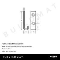 Metlam Hat And Coat Hook 20mm In Satin Stainless Steel